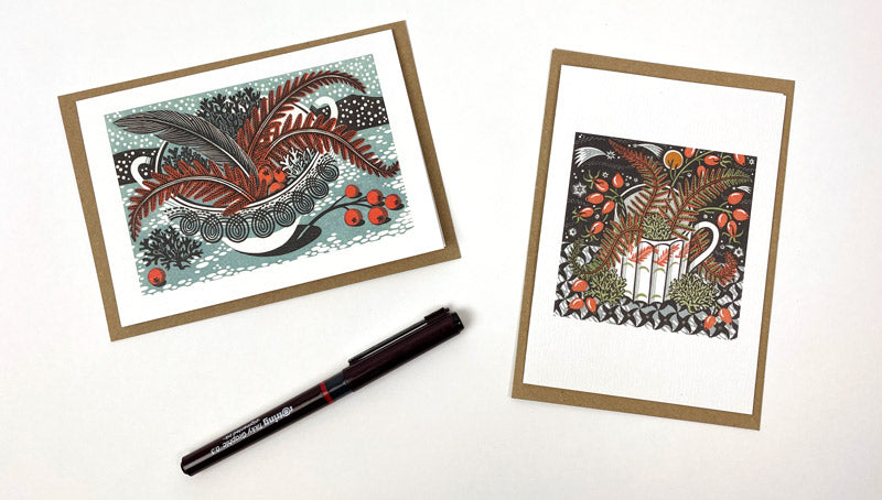 Angie Lewin is a British printmaker and designer inspired by the native flora of the British landscape. Working in linocut, wood engraving and screen print, she creates beautifully detailed works that reflect her love of wild plants, seedheads