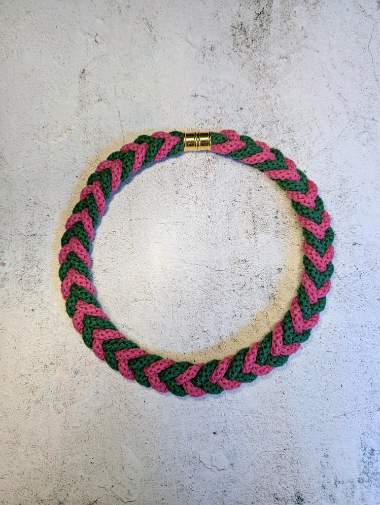 The Rachel Plaited Necklace - Emerald Green and Fuchsia